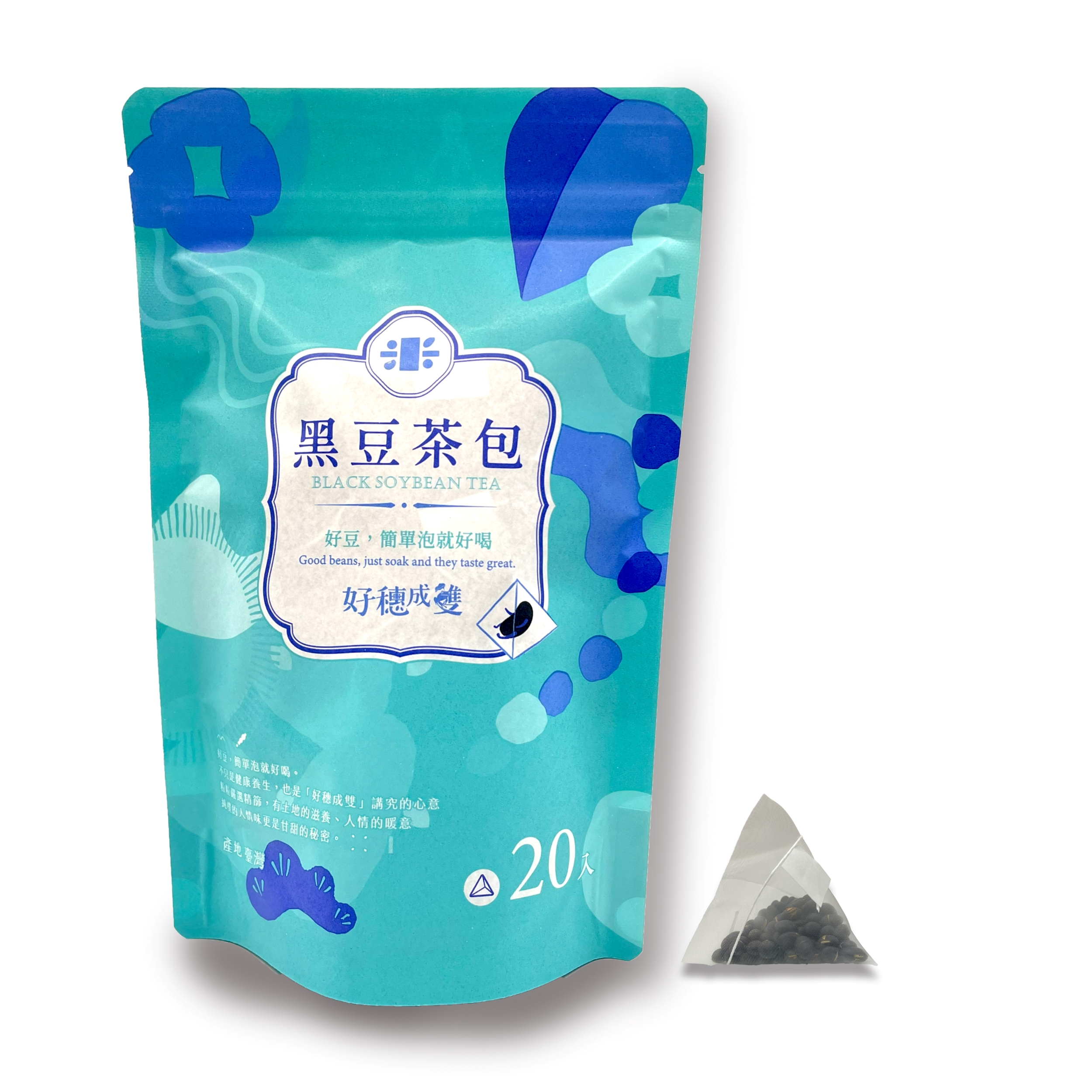 好穗成雙農產品初級加工場▲三角立體食品級茶包 △富含花青素 ▲天然無添加 【站立袋 20入】 嚴選自家種植黑豆,粒粒烏金飽滿、仁心碧綠,從種植、選豆、烘豆、包裝皆親身手作,把關每個 環節不馬虎!零添加調味劑、防腐劑,保留最純粹豆香。