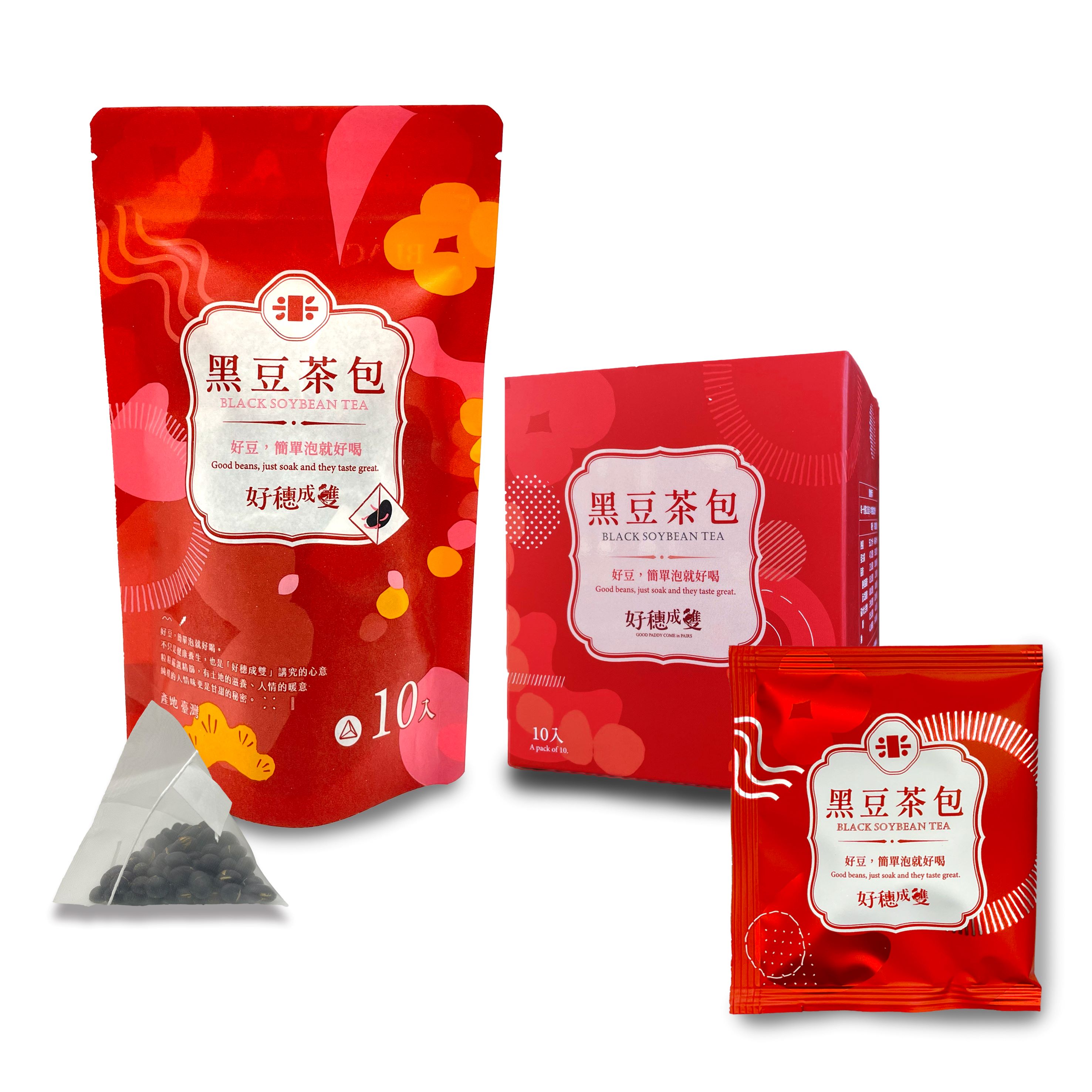 【好穗成雙】黑豆茶組合〔黑豆茶禮盒(10入)+三角茶包(10入)〕×4組