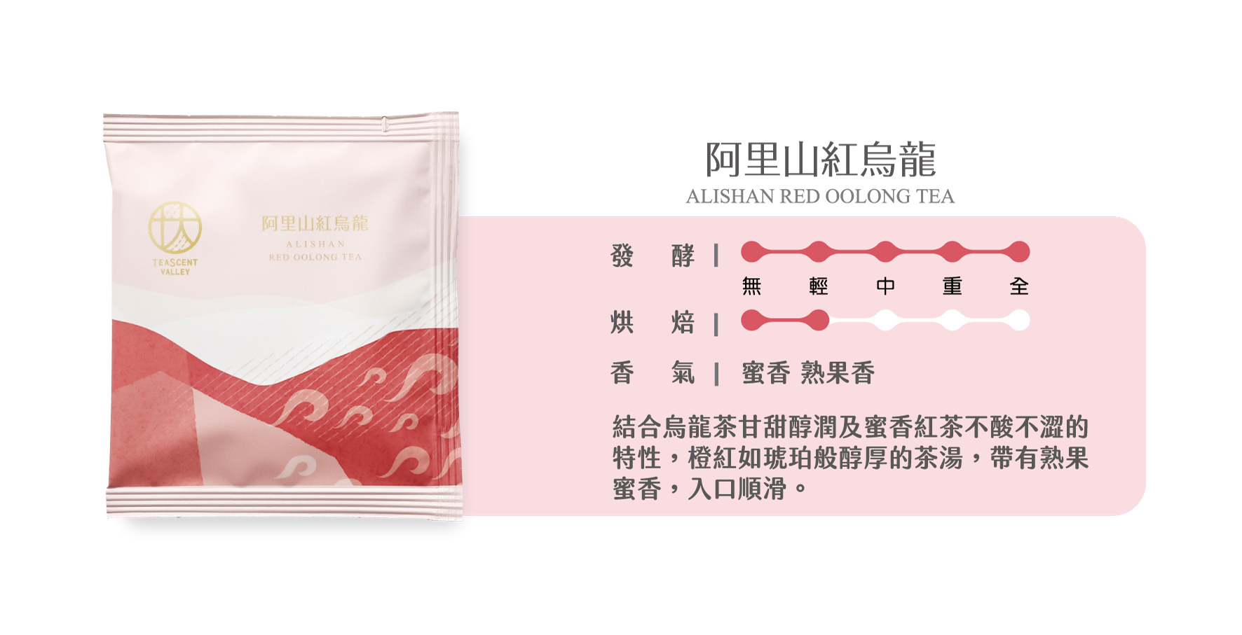 結合烏龍茶甘甜醇潤及蜜香紅茶不酸不澀的特性,紅烏龍茶橙紅如琥珀般醇厚的茶湯,入口順滑,冷泡熱泡皆合適。