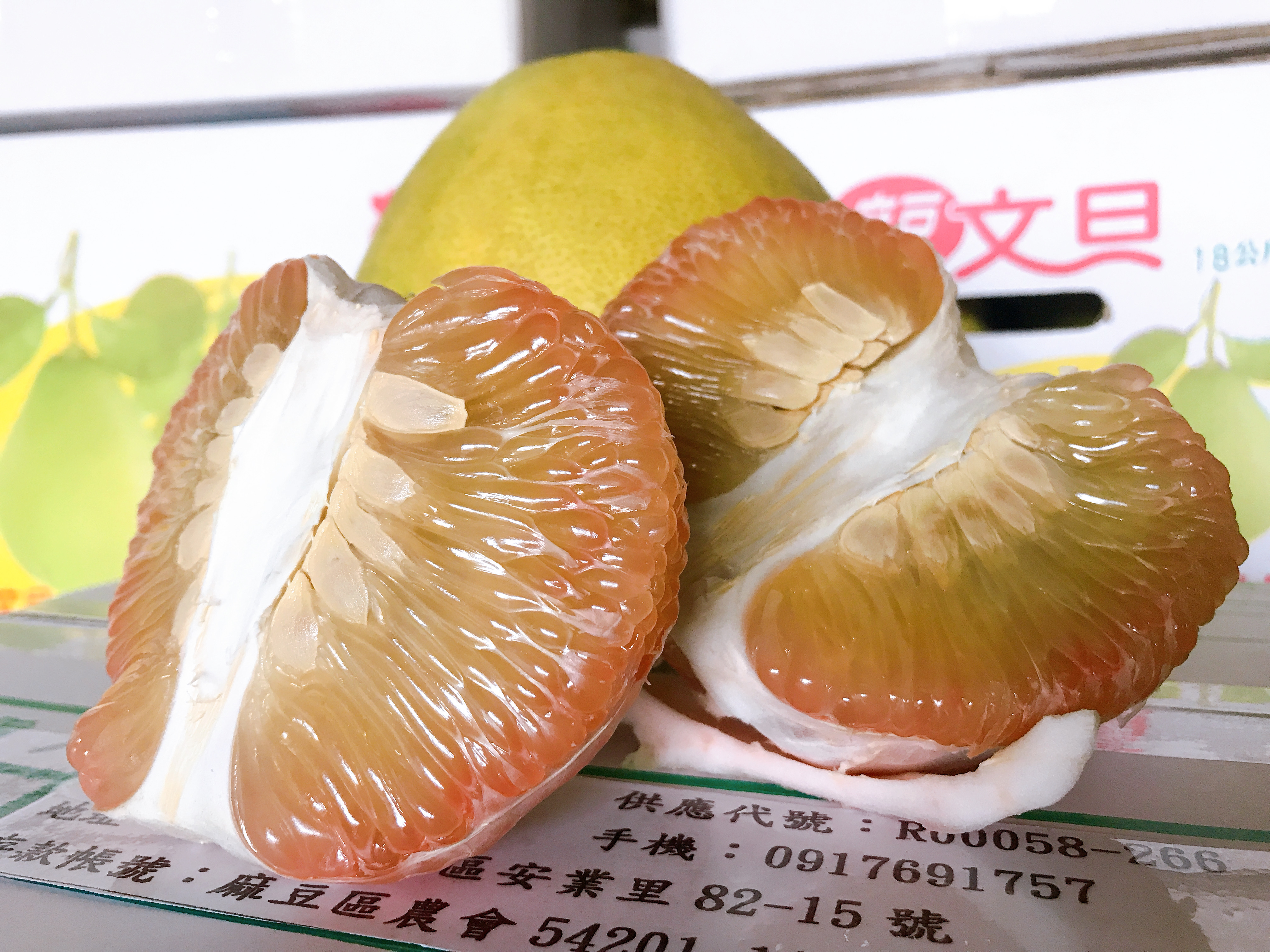 西施柚果肉呈淡粉紅色,汁多、甜度高。