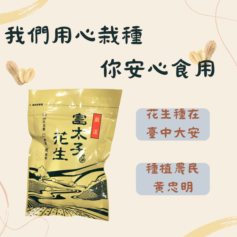 這就是富太子花生包裝背後的故事,邀請大家先看看包裝袋,是想要讓大家「看見」你所食用的花生是從何而來,並且從中想像、體會大自然帶給你在城市生活所無法感受到的「富足感」。