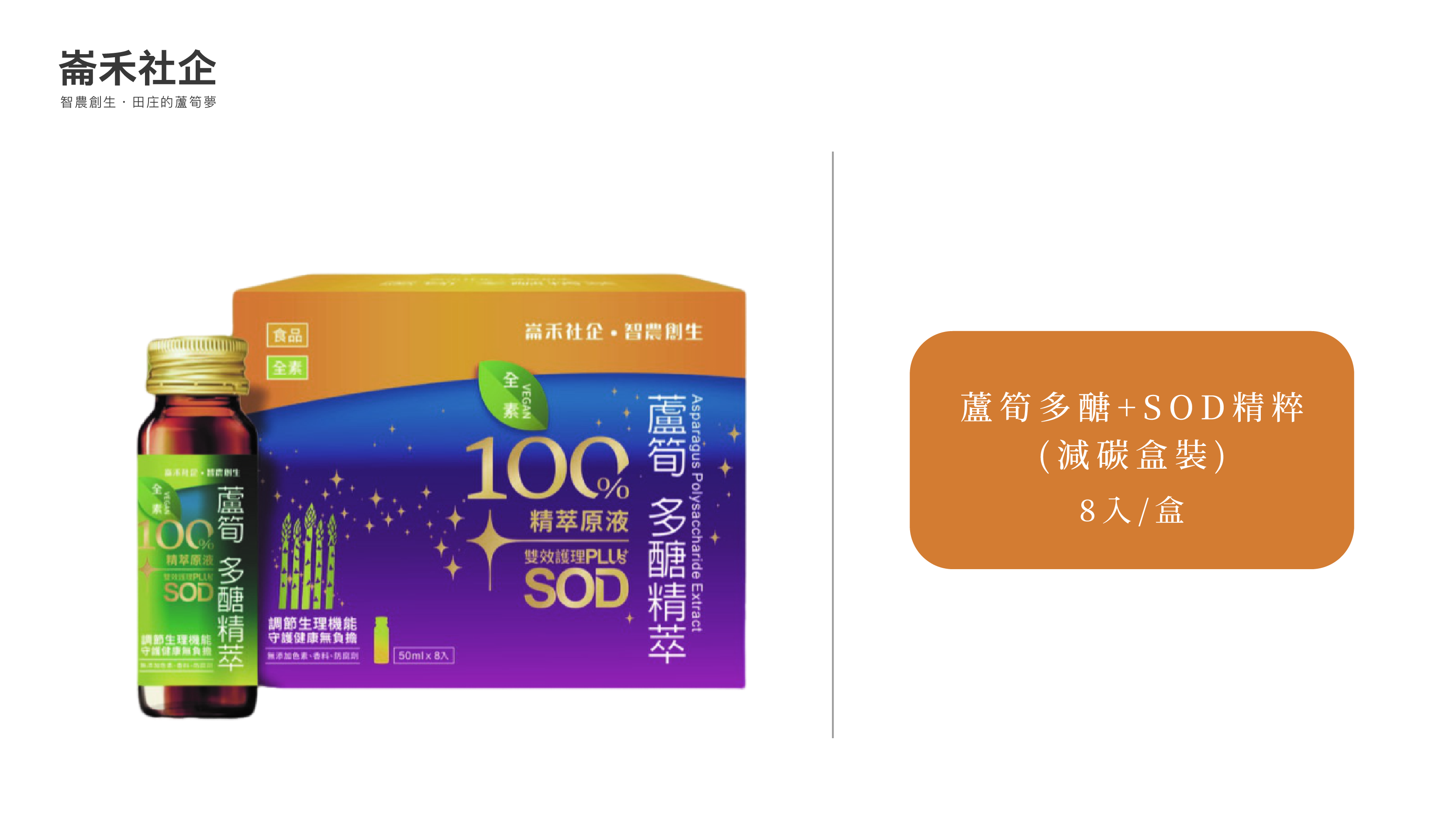 歷經兩年的專注研究,我們攜手中山大學,於自有實驗室投入心力進行研發,產品利用多項專利製程。這項結合台灣新創與天然成分萃取的——「蘆筍多醣Plus SOD」,終於正式與大家見面!每一步研發皆以高標準為要求,只為帶給您品質卓越、效果卓著的健康新選擇。