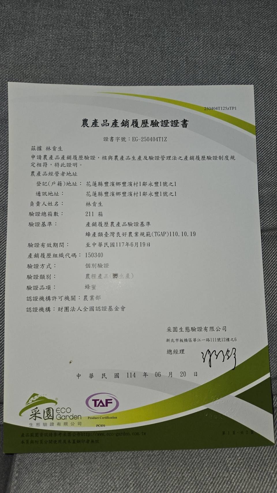 龍眼蜜有經過產銷履歷國產蜂蜜雙認證標章品質保證安心。