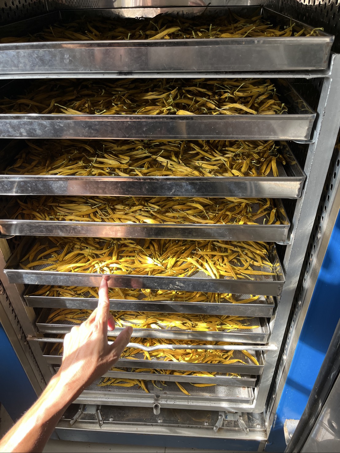 A:無硫金針若日曬容易受潮、變質或顏色不穩定,因此採收後須立即進乾燥室,以低溫穩定烘乾,確保品質與食品安全。