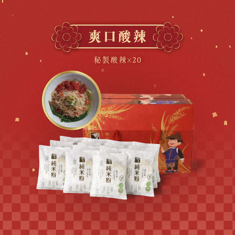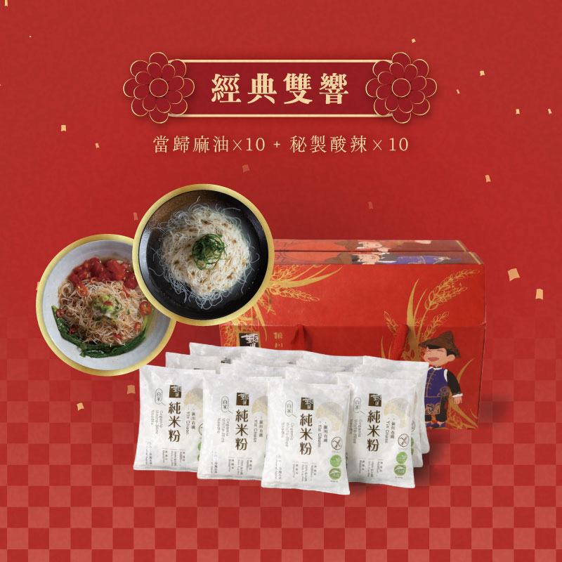 有機純米粉×20包+醬包×20包 🔥醬包選項: ✅【經典雙響】當歸麻油X10+秘製酸辣X10 ✅【暖心麻油】當歸麻油X20 ✅【爽口酸辣】秘製酸辣X20 ✅【五福臨門】秘製酸辣X4+當歸麻油X4+酸菜魚風味X4+螺螄粉X4+乾拌炸醬X4
