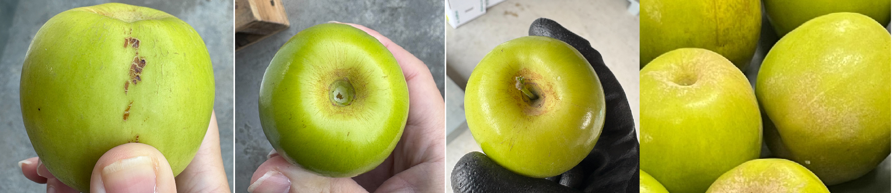 蒂頭附近褐色一圈為雨水或露水積水乾掉痕跡,隨時間成長,蜜棗長大蒂頭張開連動表皮變薄,此痕跡為更加明顯,為正常現象。